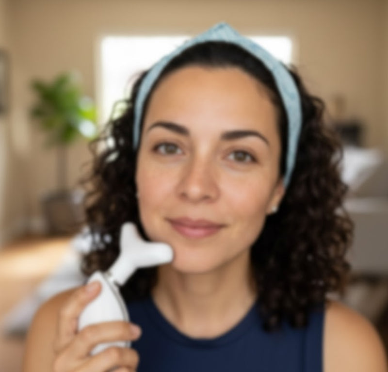Gebruik de 7-in-1 LED Facelift na het reinigen en wacht 5 minuten voordat je make-up aanbrengt.